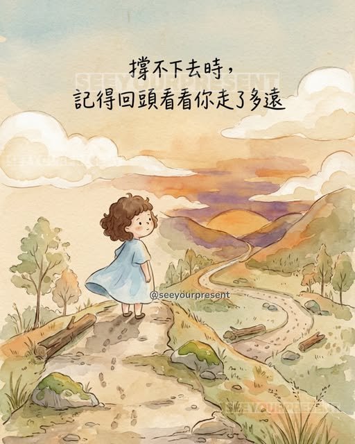 ✦ 撐不下去時,記得回頭看看你走了多遠 ✦ 如果你現在覺得快撐不住了,先停下來,不要往前看,往後看。 回頭看看—— 三年前那個撐過來的自己,是不是比現在脆弱得多? 五年前以為過不去的坎,現在是不是早就看不見了? 十年前那個跌跌撞撞的你,能想像今天的自己走到這裡嗎? 我們太習慣往前看,看著那些還沒到達的地方,看著那些還差一點的目標,看著別人走得比我們快。看著看著,就把自己看累了。 但你忘了一件事:你已經走了很遠很遠。 那些哭過的夜晚,你熬過來了。 那些以為會痛一輩子的傷,你走出來了。 那些覺得永遠學不會的事,你現在已經會了。 那些當初看不起你的人,你已經不用在意他們了。 每一步都算數,每一跤都沒白摔。 你今天站在這裡,不是僥倖,是你一步一步走過來的。 所以如果累了,不用硬撐著往前走。 停下來,轉過身,看看那個一路走來的自己。 看看他的勇敢,看看他的韌性,看看他有多不容易。 然後你會發現,你其實比你想像中強大多了。 能走到今天的人,也能走完接下來的路。
